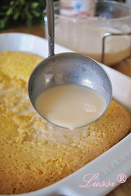 Докато блатът се пече, правим соса за сиропирането на сладкиша. В огнеупорен съд смесваме всички съставки за него, като аз имах евапорирано мляко, което си взех от Холандия и леко беше тръгнало да се карамелизира от топлината, затова и цветът на соса стана също леко карамелен. ( Отново, може би няма да имате такова под ръка, ако не живеете в чужбина,  но заменете със сметана)