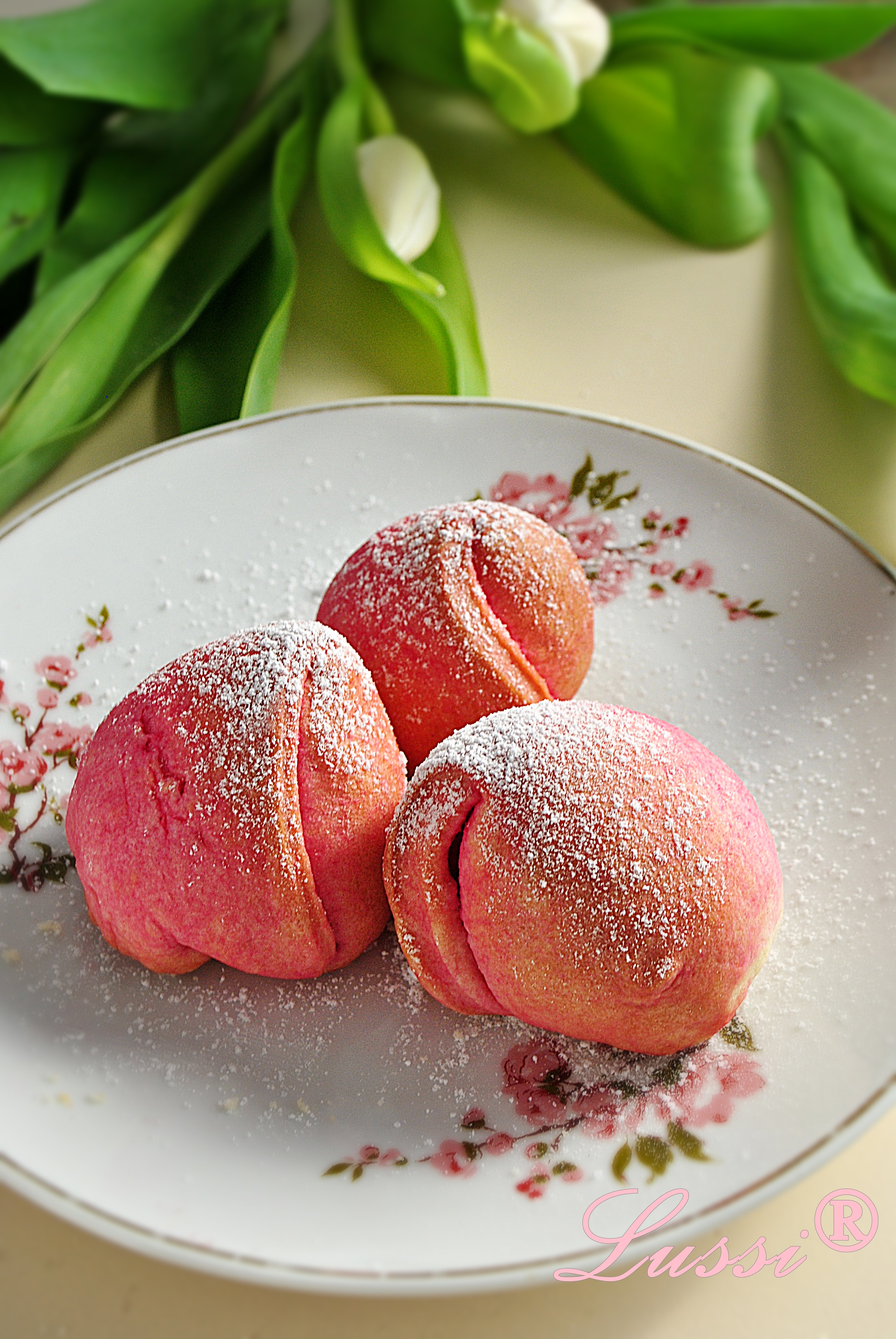 от Йоли. Бях сигурна, че ще оцветя лаленцата в малко хранителна боя за още повече чар, и се получиха чудесно. Имах малко локум, който ми донесоха от Турция и орехи от баба, така че оползотворих няколко неща от шкафа. Станаха чудесни сладки, които са много трайни и грабваха окото докато бяха налични за кафето и чая у дома. Надявам се и на вас да ви харесат, а ако искате да видите